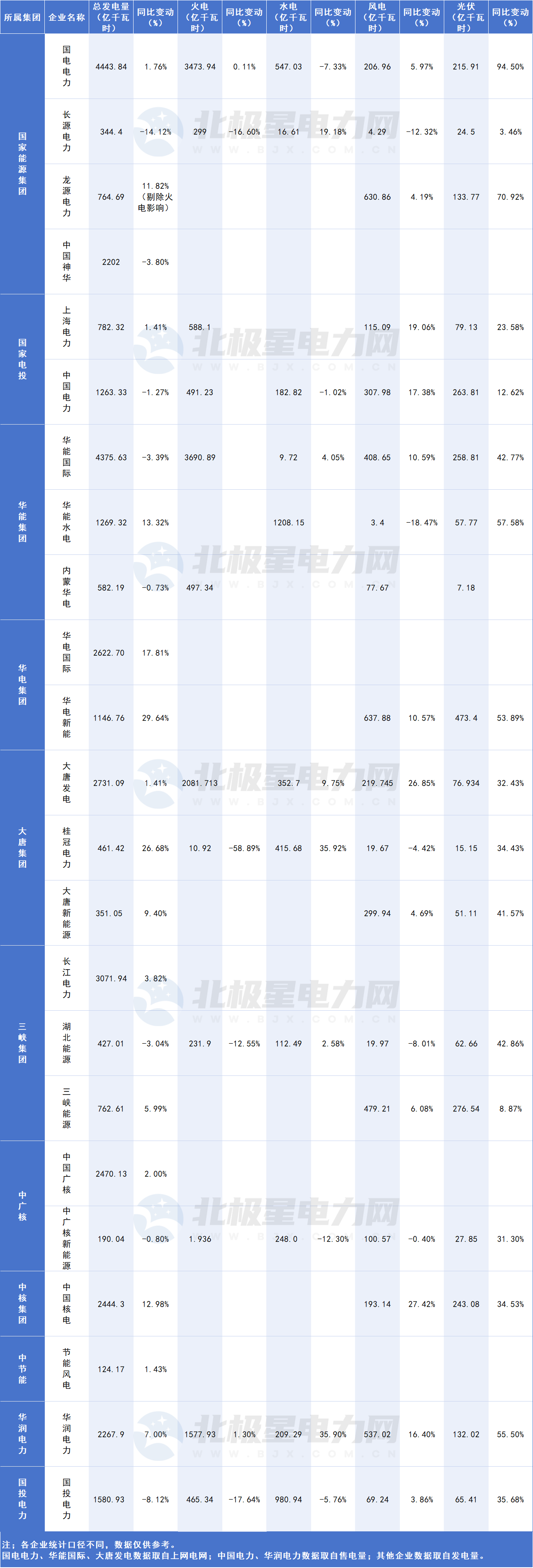 注:各企业统计口径不同,数据仅供参考。