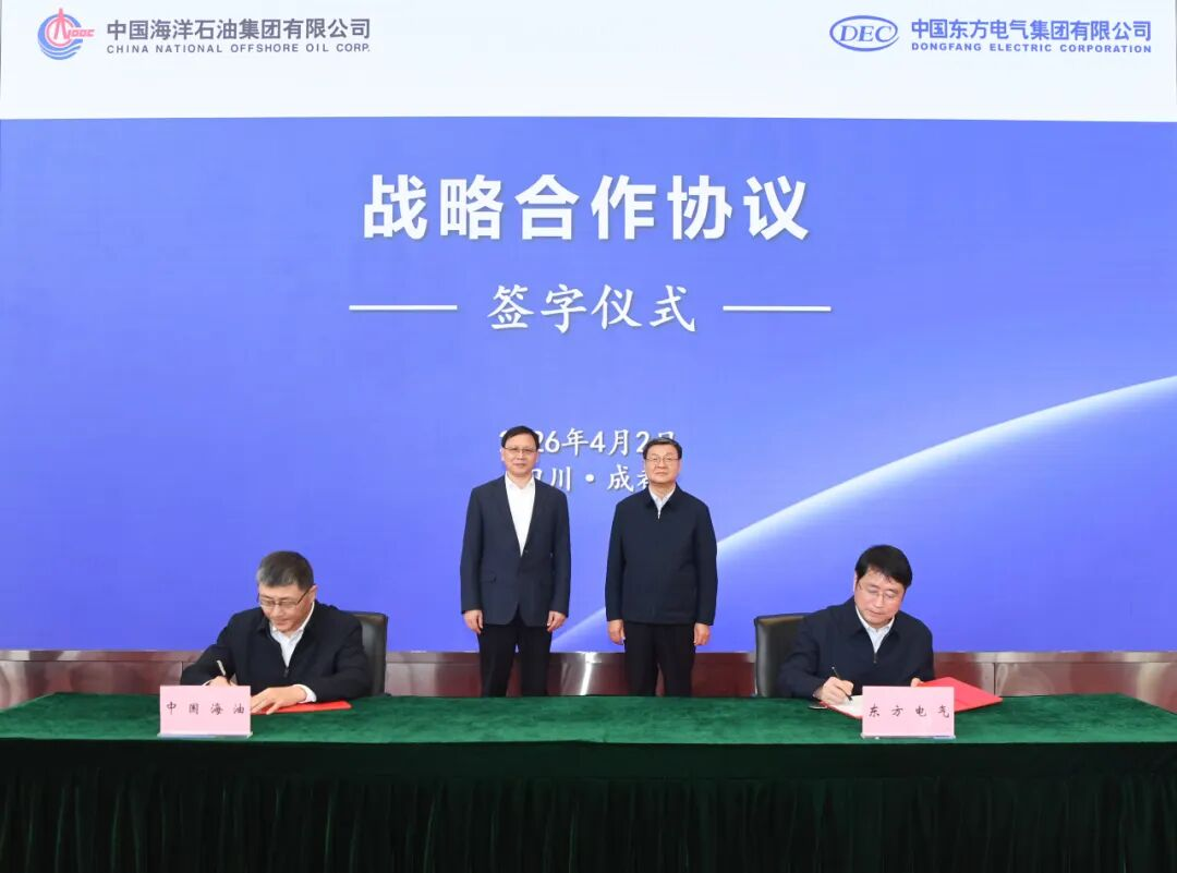 4月2日,中国东方电气集团有限公司与中国海洋石油集团有限公司在蓉签署战略合作协议。东方电气集团党组书记、董事长罗乾宜,中国海油党组书记、董事长张传江进行会谈并见证签约。东方电气集团总经理、党组副书记张彦军,党组成员、副总经理李建华陪同调研。李建华与中国海油总经理助理朱磊代表双方签署协议。