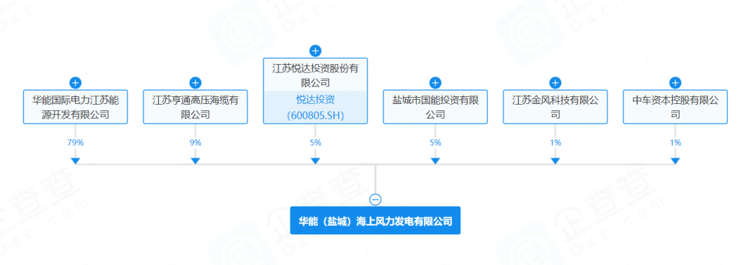 新公司由华能国际电力江苏能源开发有限公司(79.00%)、江苏亨通高压海缆有限公司(9.00%)、江苏悦达投资股份有限公司(5.00%)、盐城市国能投资有限公司(5.00%)、江苏金风科技有限公司(1.00%)以及中车资本控股有限公司(1.00%)共同持股。