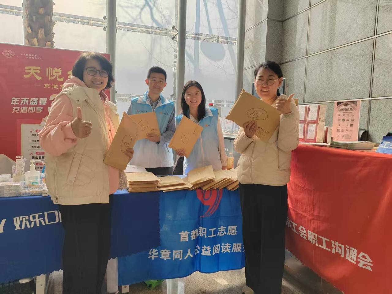 志愿服务同步开展,暖心关怀就在身边。本次活动的一大亮点是“工会+志愿”的联动服务模式:全国劳动模范梁会兰带领“会兰孝亲敬老服务队”亲临现场,为职工提供血压血糖检测,并以三十余年无私奉献的感人事迹,生动诠释了劳模精神;北京年轮中医骨科医院、北京欢乐口腔的医护团队,针对职场人群常见的颈肩腰腿不适、口腔健康问题,提供了专业的义诊咨询、手法调理和健康指导;北京华章同人文化传播有限公司带来了精品图书盲盒,满足职工的精神文化需求。