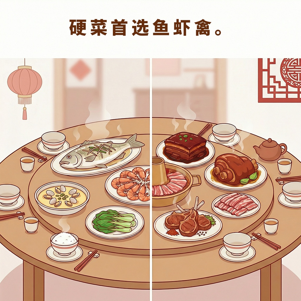 1.硬菜首选鱼虾禽