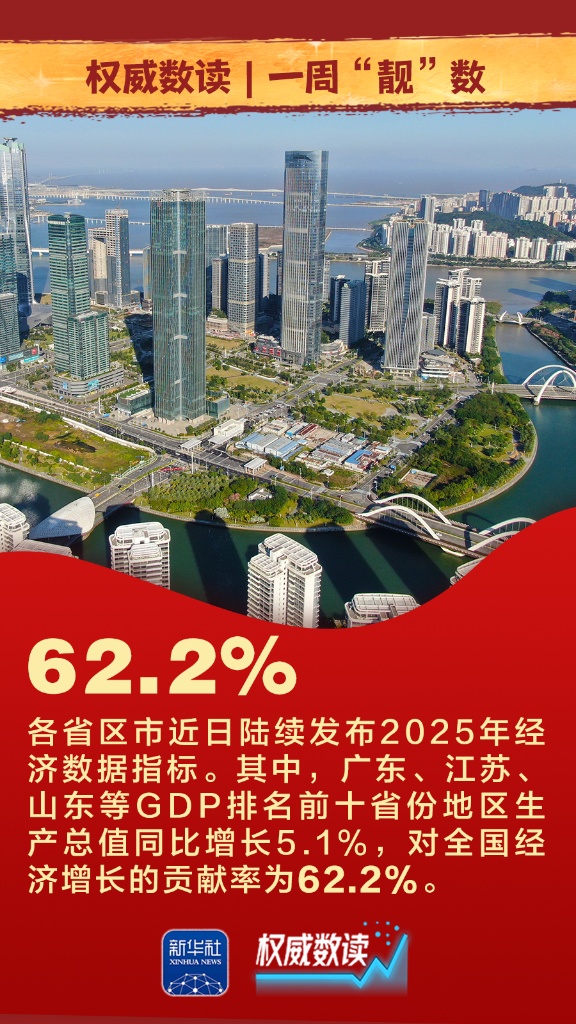今年春节假期,“乐购新春”春节特别活动已安排20.5亿元“新春礼包”;1月份,核心CPI同比上涨0.8%;2025年经济大省对全国经济增长贡献率为62.2%……本周,这些数据最值得关注。