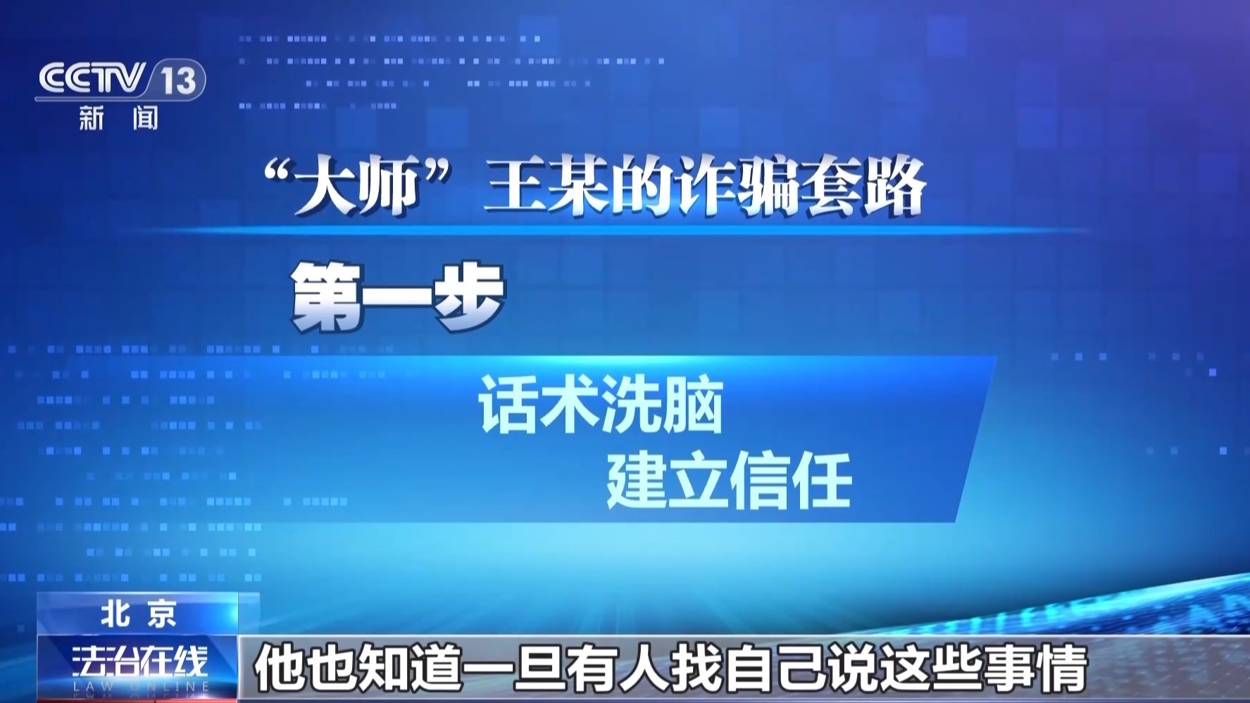 北京市房山区人民法院法官 王奉帅:他也知道一旦有人找自己说这些事情,肯定是在工作生活中遭遇了不幸,并凭借自己的经验进行一定的推理分析,这样就很容易说中,很容易获取当事人信任。继而被告人又虚构自己有治病驱邪能力,提出可以以“做法事”的方式驱邪,以此骗取当事人钱财。