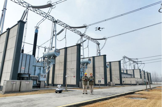 国网江苏宿迁供电公司员工在500千伏钟吾变电站开展无人机特巡。