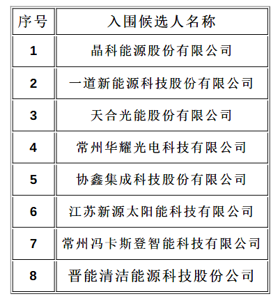 根据公示,8家组件企业、3家逆变器企业入围,详情见下:
