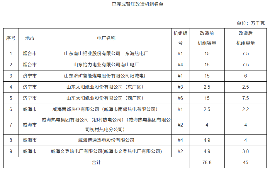 - 9台机组!山东省发布已完成背压改造机组名单