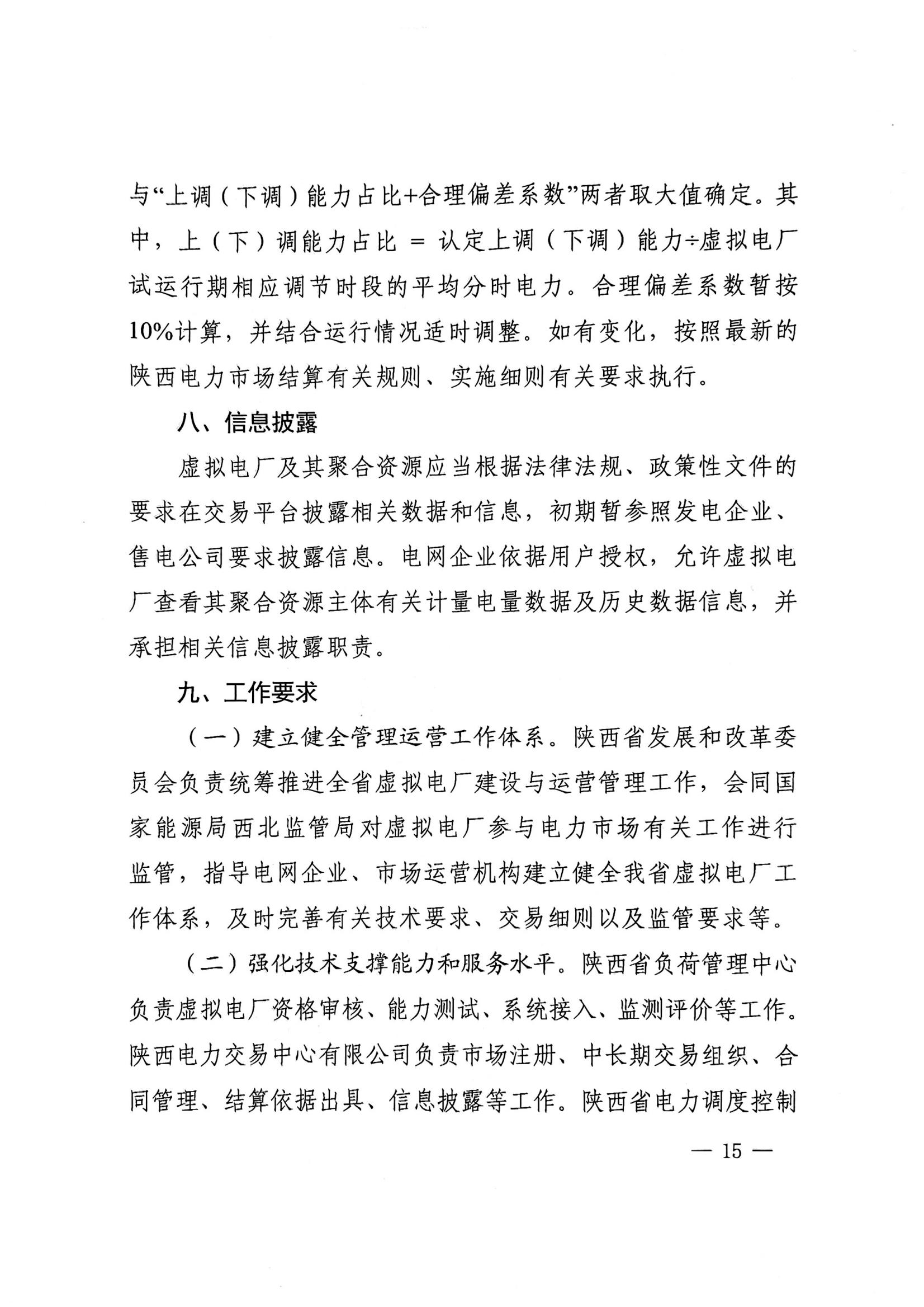 发电类资源:符合国家及陕西省分布式电源有关管理要求,具备独立上网关口、接入电压等级在10千伏(不含)以下的工商业分布式光伏及分散式风电(含其内部配置储能),其中“自发自用、余量上网”的工商业分布式光伏,须与对应用户被同一虚拟电厂代理。