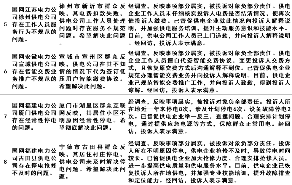 国家能源局12398能源监管热线投诉举报办理情况通报(2024年第12期)