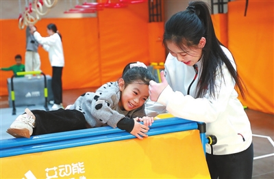 徐州幼儿师范高等专科学校体育学院毕业生徐倩,创办了多家体能训练中心。这是她在陪小朋友进行体能练习。